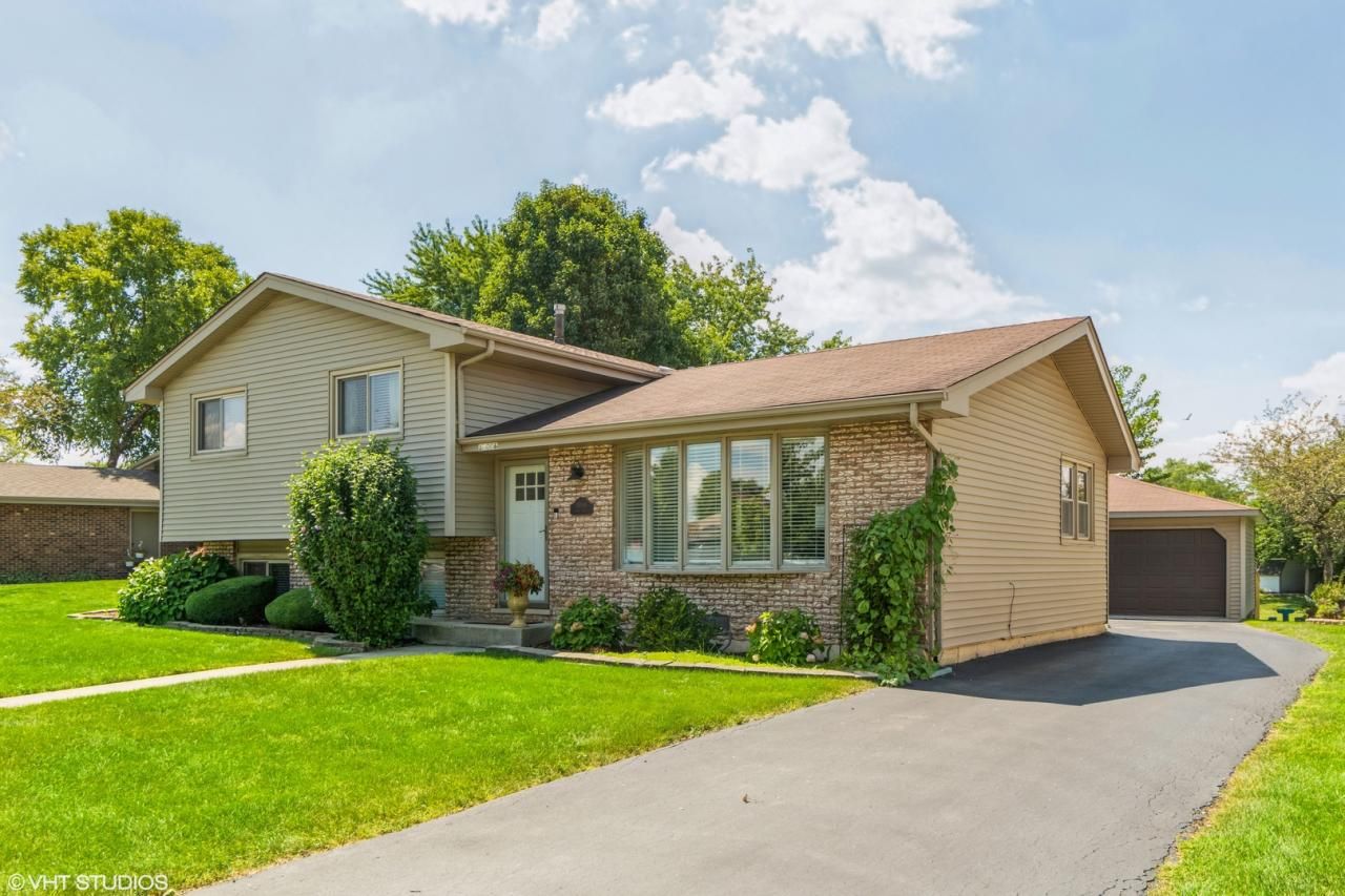 Nothing to do but move in! Great location for this 3 bedroom, 2 bath split level with LVT wood flooring in the living room, dining room, kitchen & family room. Kitchen with white cabinets, stainless steel stove, microwave & refrigerator and sliding glass doors leading to the large patio. New carpet installed in 2021 in all 3 bedrooms, hallway & stairs. Master bedroom with access to the shared bathroom. Bedroom 3 has built-in shelves and closet with organizers. Lower level features a family room with wood burning fireplace, updated bathroom with shower, laundry room with sink & exterior access and crawl space for storage. Backyard with new wood fence in 2021 and 2 car detached garage. Home backs to open area and there is a gate in the rear fence. New in 2020: hot water heater, sump pump, ejector pump, washer & dryer. Movable kitchen island, fountain in backyard & electronic toilet seat in hall bathroom do not stay. Bay window in the living room does not open. Home is being sold as is.